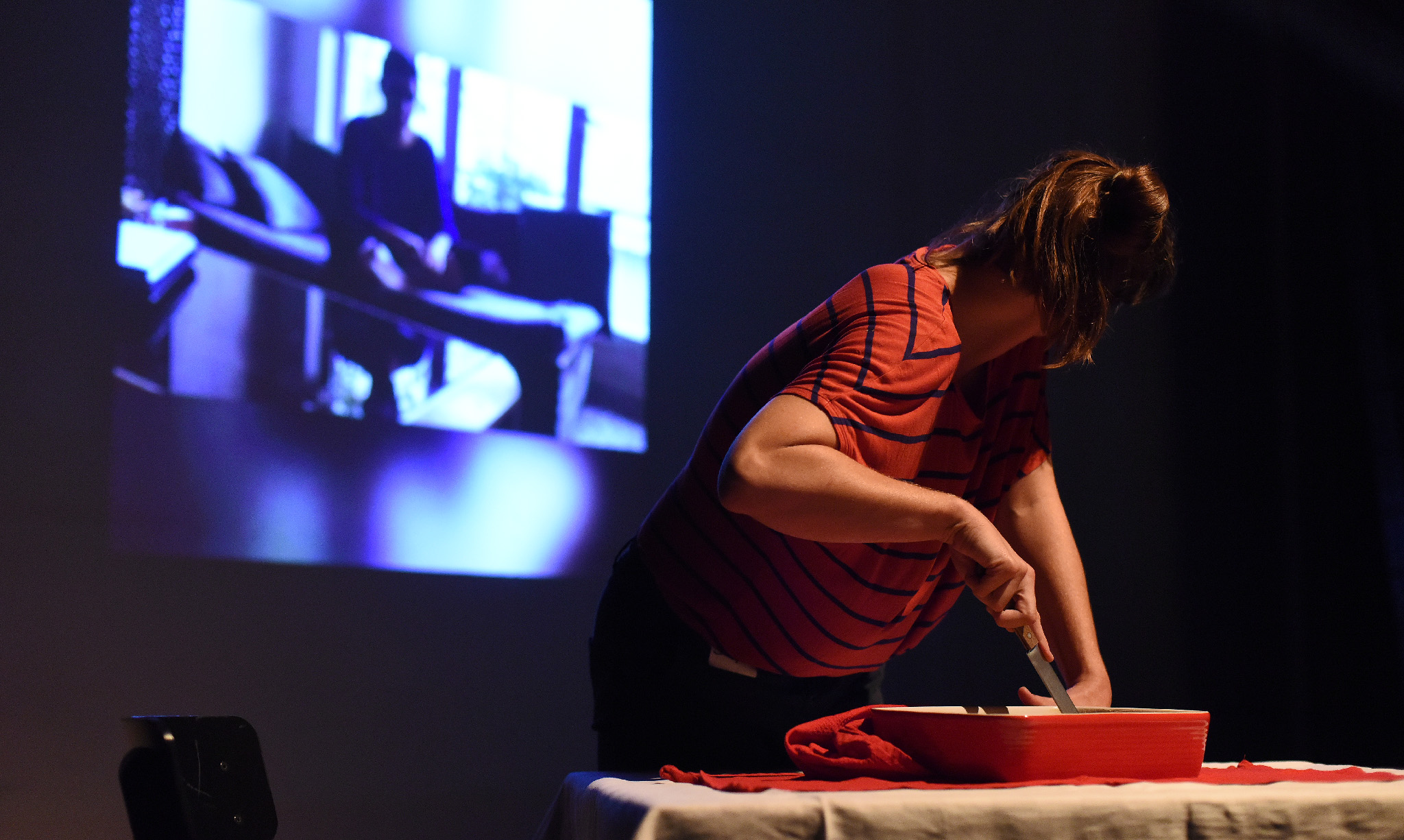 Video projiciran na velikom ekranu sadrži prizore iz mog performansa Pjevam (I’m singing) te snimke mene koja govorim, dajem upute prisutnima, itd. Unatoč bivanju u različitim prostorno-vremenskim kontekstima, prisutnost opipljivog objekta (kolača koji peku sudionici u suradnji sa mnom) preklopit će naše prostorno-vremenske prisutnosti. Za vrijeme tog događanja želim podijeliti neke misli iz svog procesa rada / o svom procesu rada, vezane uz privatni prostor, dnevno-rutinske aktivnosti, defamilijarizaciju, žensko nastojanje. Postoji jasan cilj unutar jednostavnog čina pečenja kolača i uvijek postoji uputa za postizanje tog cilja. Zašto ga želim dekonstruirati kako bih stvorila prostor u kojem su mogući bezbrojni pristupi.
