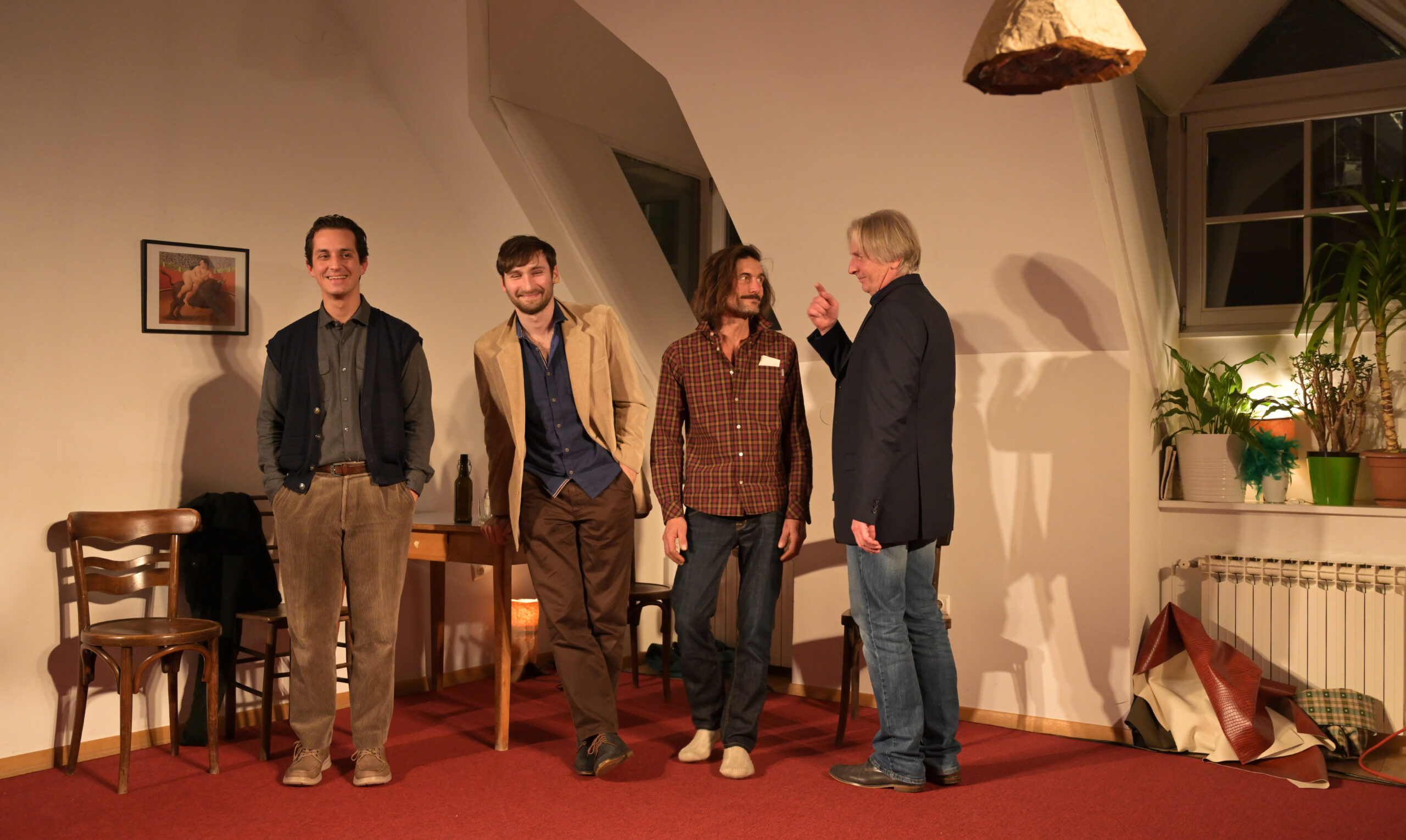 Četiri muškarca susreću se u neobičnu zajedništvu i uspostavljaju komunikaciju, pritom se sudaraju sami sa sobom, s vlastitom intimom i pozicijom u kojoj je previše toga prošlo, a premalo toga ostalo da bi se promijenile odluke koje su ih dovele na ovo mjesto.