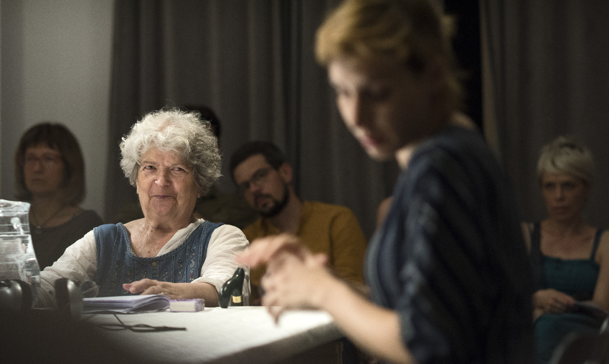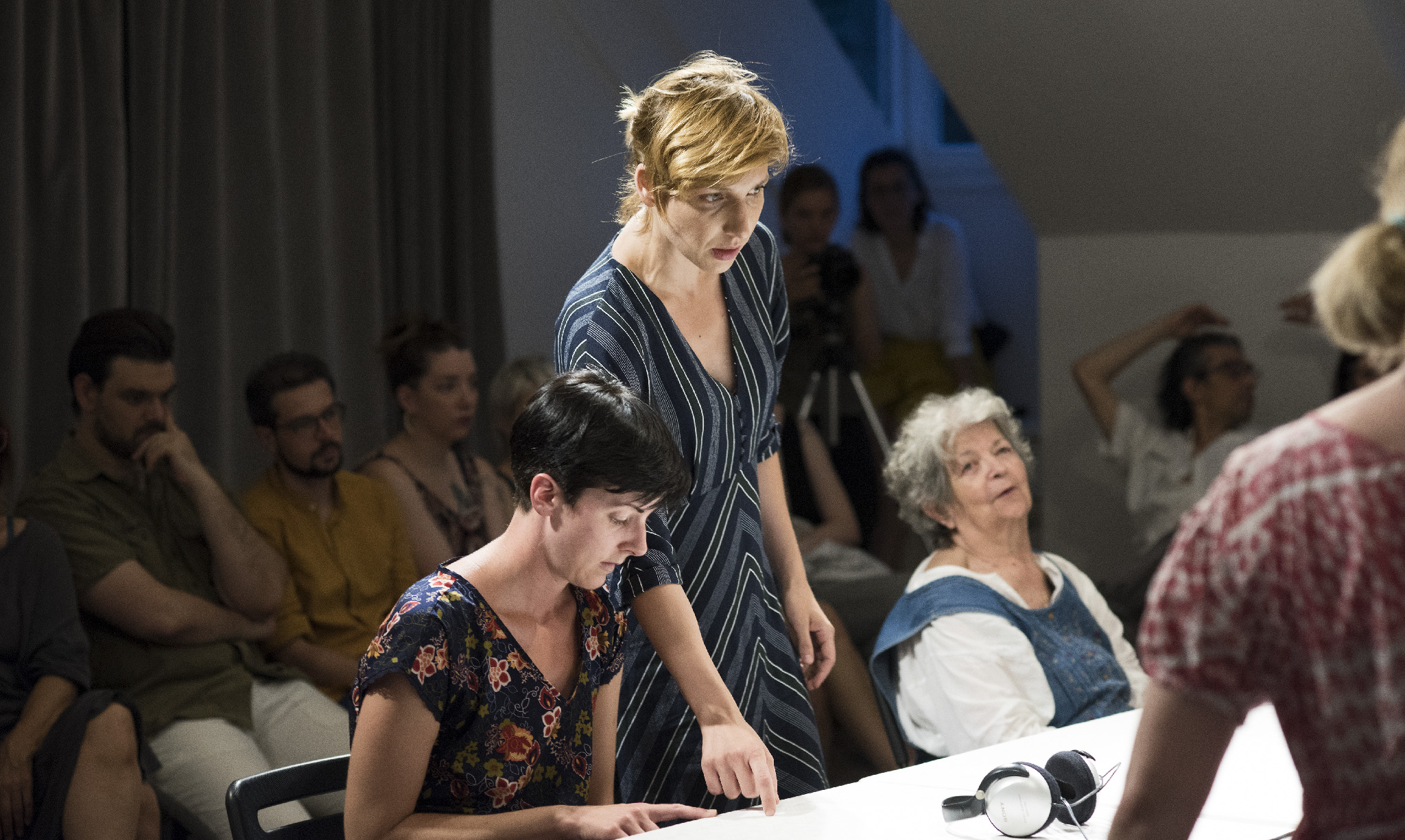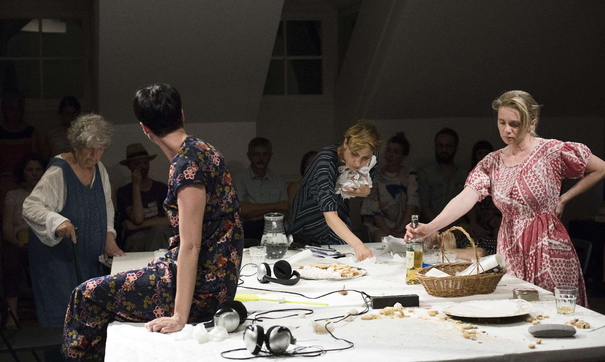 Predstava je režirana tako da prisutne žene nastavljaju govor ne samo jedna s drugom, nego i jedna kroz drugu, brišući granice između »moje« i »tvoje« priče u korist zajedničkog pripovijedanja. Ali karakterne razlike među likovima vrlo su jake i brzo se uspostavljaju. Najstarija kazivačica u izvedbi Slavice Jukić, nezaboravno tužne i istovremeno pune prkosne životne vedrine, najviše inzistira na tome da treba dignuti glavu i ići dalje. Najmlađa glumica Barbara Prpić bori se ponajprije za pravo na svoju ljutnju, a onda i za pravo na svoju novu, »nepodobnu« zaljubljenost. Dijana Vidušin je duboko zamišljena, sjetna, koliko i dostojanstvena na način koji podsjeća na uspravnost dokumentarne Antigone. Jasna Palić Picukarić fantastično je nijansirana i provokativna u roli sarkastične osice, provokativno smještene između dramskog i dokumentarnog teatra, kao da čitav život igra samo u Gavelli i na ZKM-ovim daskama, a ne u svom matičnom kazalištu Komedija. Utoliko je ovo predstava i o tome što sve ne znamo o uključenim glumicama, kroz fahove u koje su inače smještene gubeći mnoge dimenzije njihove umjetničke darovitosti. Urša Raukar i Lada Bonacci podsjećaju na Čehovljeve sestre Olgu i Mašu, odnosno na strogost i ogorčenost ženskih likova koji su također dugo zarobljeni u bezizlaznoj situaciji. Općenito se arhiv kazališnih likova stalno »pretapa« s arhivom dokumentarnih svjedočanstava, što predstavi povećava dubinu i intenzitet.”