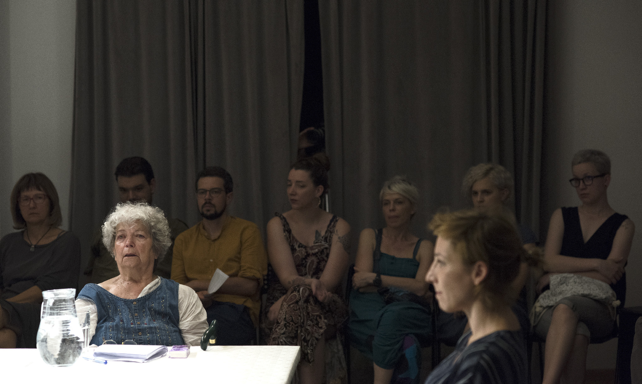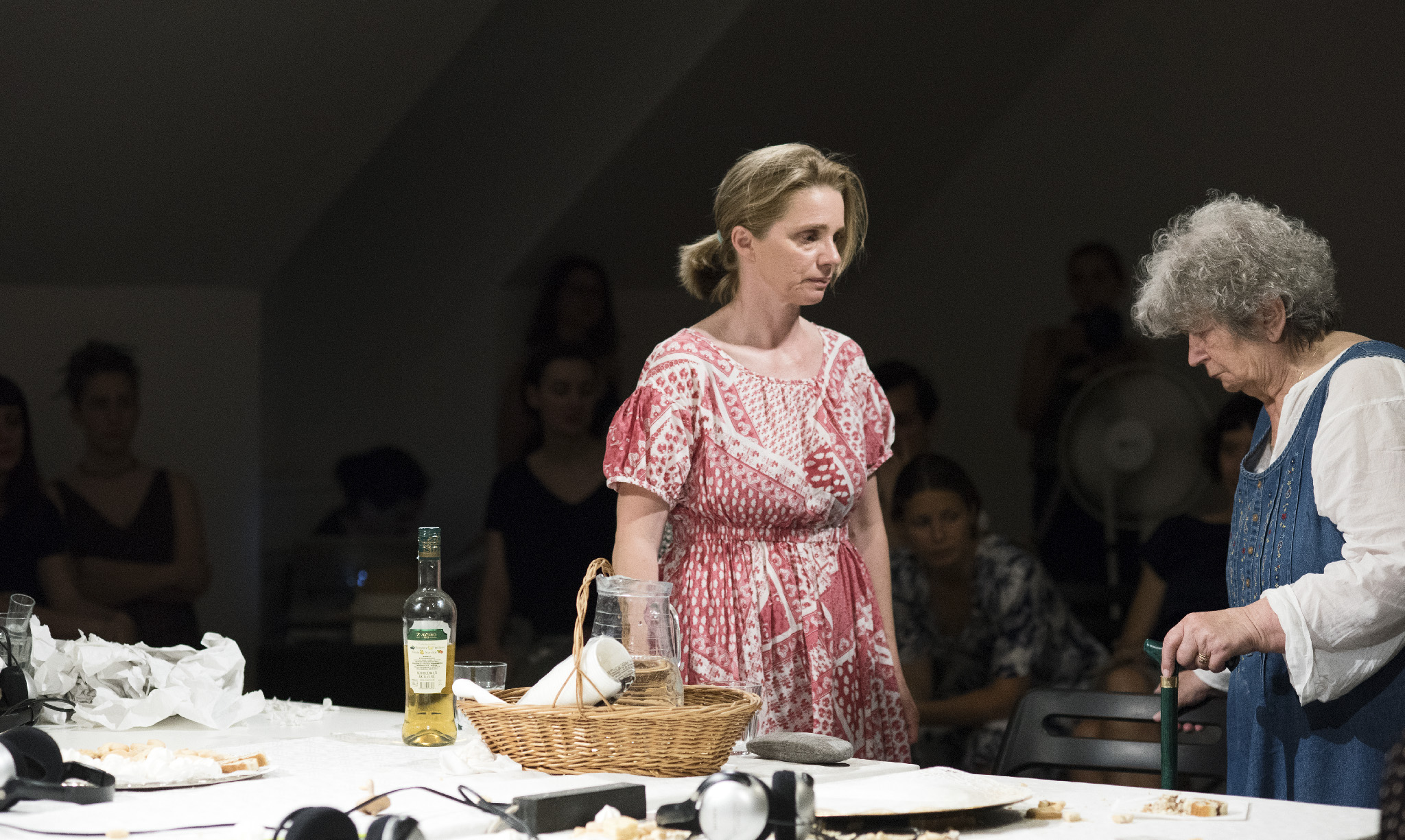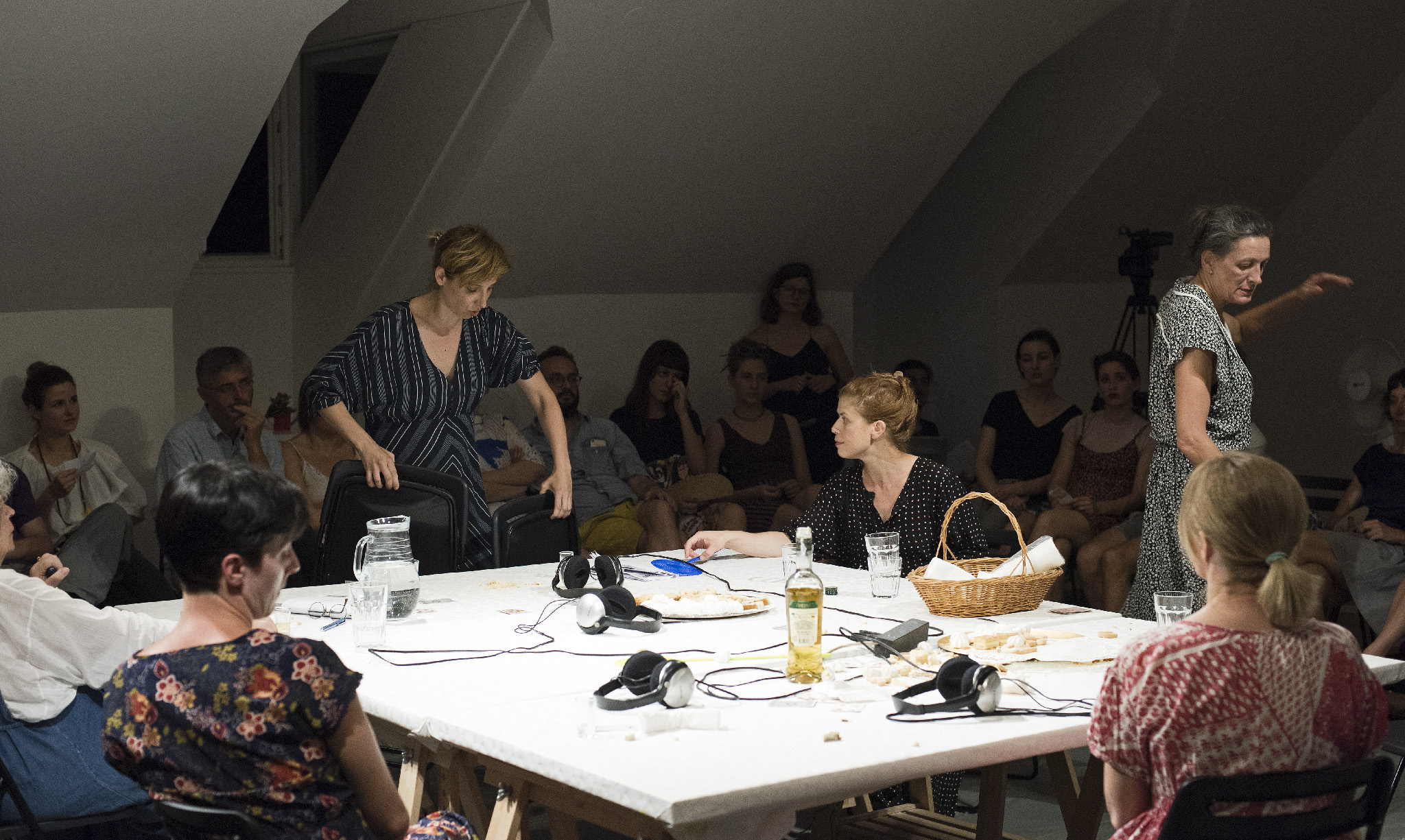 “Izvedba rezonira kao neodlučan govoreni jazz; počinje uštimavanjem dok se traži i postepeno uspostavlja zajednički tonalitet, isprva fragmentirane i nedo- vršene misli s vremenom se slažu u sve čvršće pripovjedne blokove, refreni se neprestano vraćaju, slijede različite modulacije i konačno odvode u fade-out. Na neki način, Razgovaranja su rađena da se zaboravljaju odmah, većim dijelom zbog same prirode improvizacija koje je nemoguće upamtiti onako lako i trajno kao prepoznatljivu melodiju koja će nas još godinama znati nenadano zaskočiti. Zaborav lako prekriva opća mjesta poput kratkih razgovora o hrani, kojima se govoreni odlomci lijepe zajedno kako tišina ne bi sve progutala, kao i priče koje smo jednako rastjelovljene već nebrojeno puta čule pa je bolno mjesto odavno utrnulo. Uostalom, zaborav nas štiti, otupljuje oštre rubove, skriva komadiće slagalice, što nam ponekad jedino i omogućuje da prerežemo niti vremena i ko- račamo dalje. Možda je mnogo gore od izdaje sjećanja kad nas izda zaborav. A u predstavi zaborava nema, osim u vidu magle kroz koju je sve teže vidjeti i čuti drugu osobu, a koja se nikada posve ne podiže. No autorski tim olakšava svo- jim gledateljicama tranziciju između različitih vremena u okviru koji okružuje izvedbu, polaganim uvodom i još nježnijim outrom uz razgovor, piće i kolačić, kontaktom koji pomaže uzburkanim doživljajima da se slegnu.