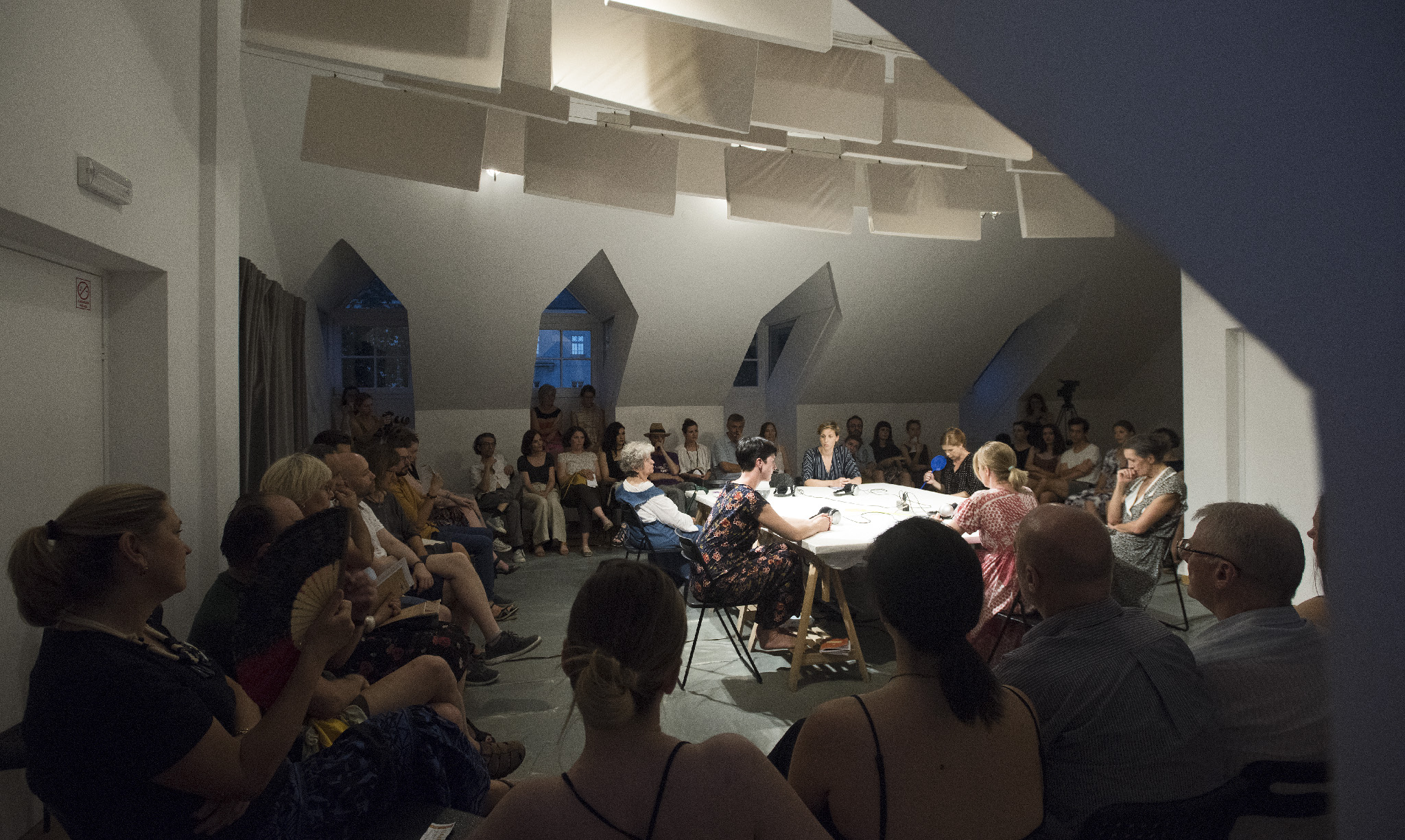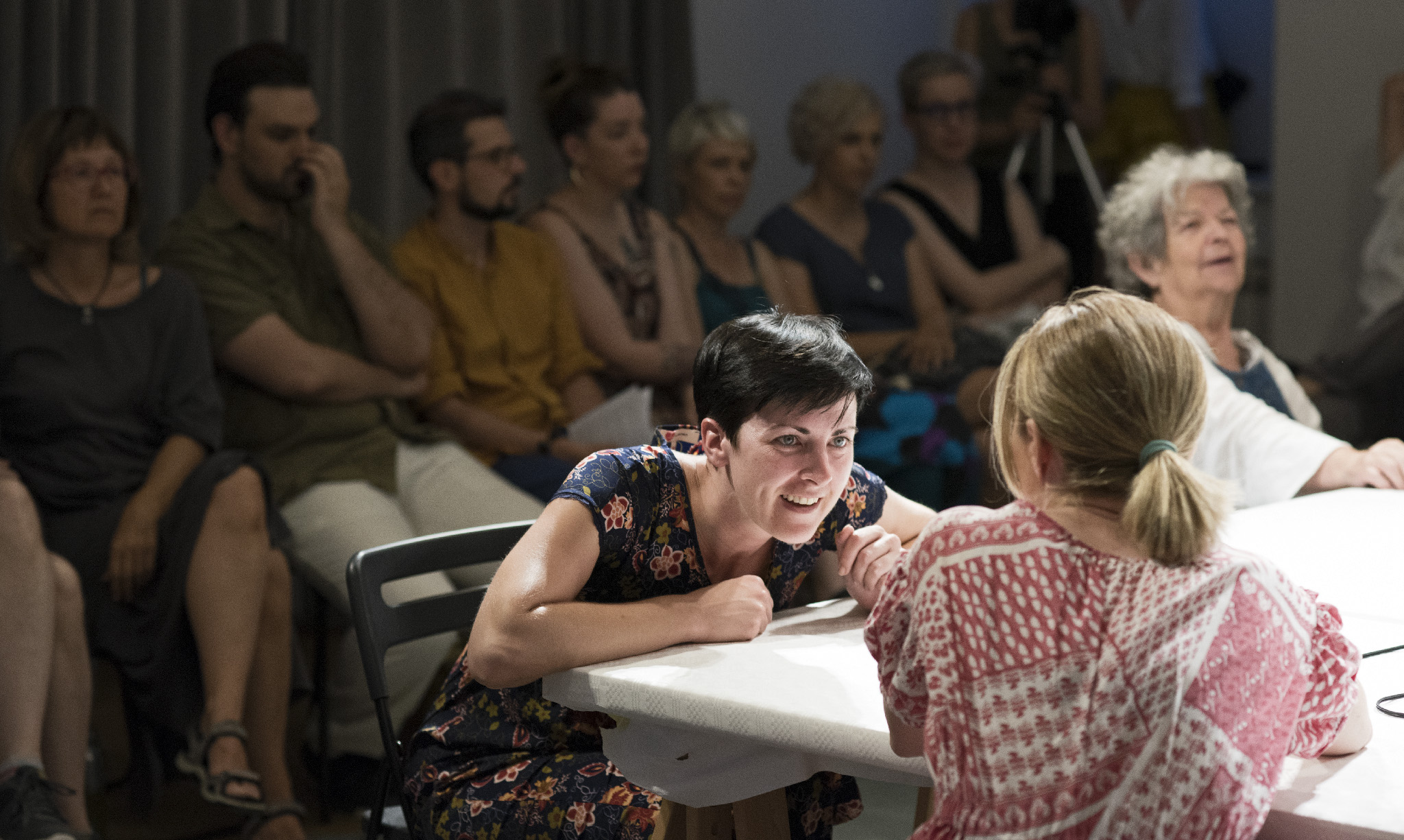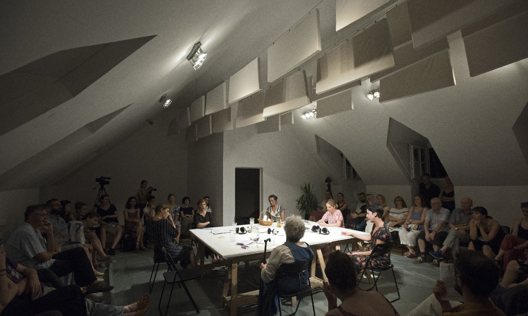 “Izvedba rezonira kao neodlučan govoreni jazz; počinje uštimavanjem dok se traži i postepeno uspostavlja zajednički tonalitet, isprva fragmentirane i nedo- vršene misli s vremenom se slažu u sve čvršće pripovjedne blokove, refreni se neprestano vraćaju, slijede različite modulacije i konačno odvode u fade-out. Na neki način, Razgovaranja su rađena da se zaboravljaju odmah, većim dijelom zbog same prirode improvizacija koje je nemoguće upamtiti onako lako i trajno kao prepoznatljivu melodiju koja će nas još godinama znati nenadano zaskočiti. Zaborav lako prekriva opća mjesta poput kratkih razgovora o hrani, kojima se govoreni odlomci lijepe zajedno kako tišina ne bi sve progutala, kao i priče koje smo jednako rastjelovljene već nebrojeno puta čule pa je bolno mjesto odavno utrnulo. Uostalom, zaborav nas štiti, otupljuje oštre rubove, skriva komadiće slagalice, što nam ponekad jedino i omogućuje da prerežemo niti vremena i ko- račamo dalje. Možda je mnogo gore od izdaje sjećanja kad nas izda zaborav. A u predstavi zaborava nema, osim u vidu magle kroz koju je sve teže vidjeti i čuti drugu osobu, a koja se nikada posve ne podiže. No autorski tim olakšava svo- jim gledateljicama tranziciju između različitih vremena u okviru koji okružuje izvedbu, polaganim uvodom i još nježnijim outrom uz razgovor, piće i kolačić, kontaktom koji pomaže uzburkanim doživljajima da se slegnu.
