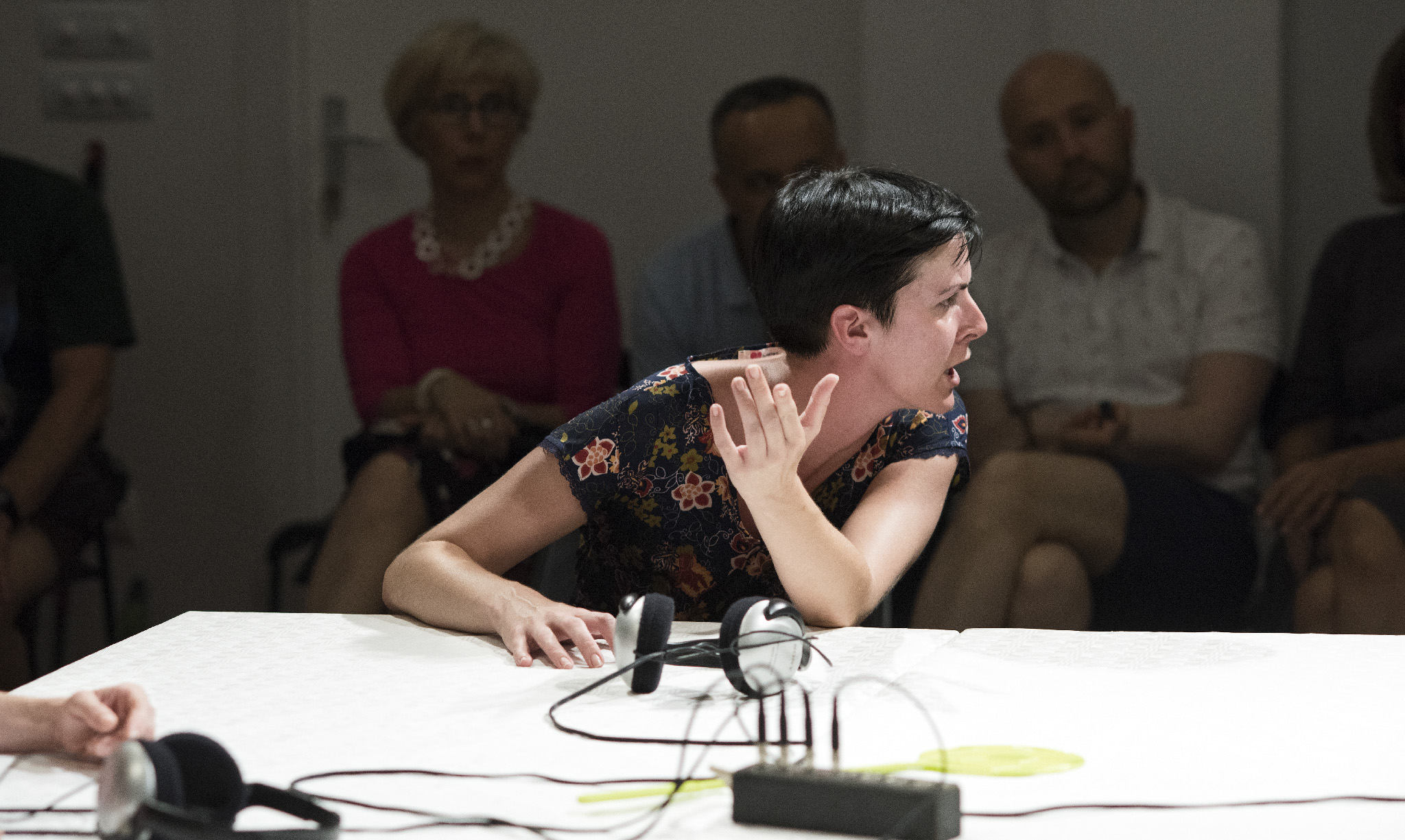 “Na početku predstave zvučna kulisa je žamor ženskih glasova ispremiješan sa zvukovima iz prirode i treba se jako upinjati da bi se razaznale riječi, da bi se shvatio kontekst govora. Glumice tada s velikim slušalicama slušaju stvarne intervjue s područja Darde, jedna drugoj dodaju slušalice, skidaju ih i stavljaju, pokušavaju čuti i razaznati povremeno nerazumljive, zamagljene, zamuljane ili progutane, ispuštene riječi. Na kraju predstave ta simbolična gesta postaje jasna: trebamo odbaciti službene narative o vlastitim životima, žene u patrijarhatu moraju slušati jedna drugu, slušati te priče i pokušati ih prihvatiti, podržati. Svijet će se promijeniti, ili početi mijenjati, međusobnim slušanjem, dijeljenjem iskustava, razgovaranjem. Iz njih bi se moglo izroditi neko zajedništvo, koje će onda rezultirati i nekim novim ne-linearnim, ne-patrijarhalnim formama kojima će biti moguće obuhvatiti život. Predstava Razgovaranje Marine Petković Liker savršeni je korak u tom smjeru – govoreći o sitnom, svakodnevnom, naoko nevažnom i efemernom, ukazala je na velika i općeljudska pitanja – od problema međuljudske komunikacije, pa sve do kraja, do života i smrti.”